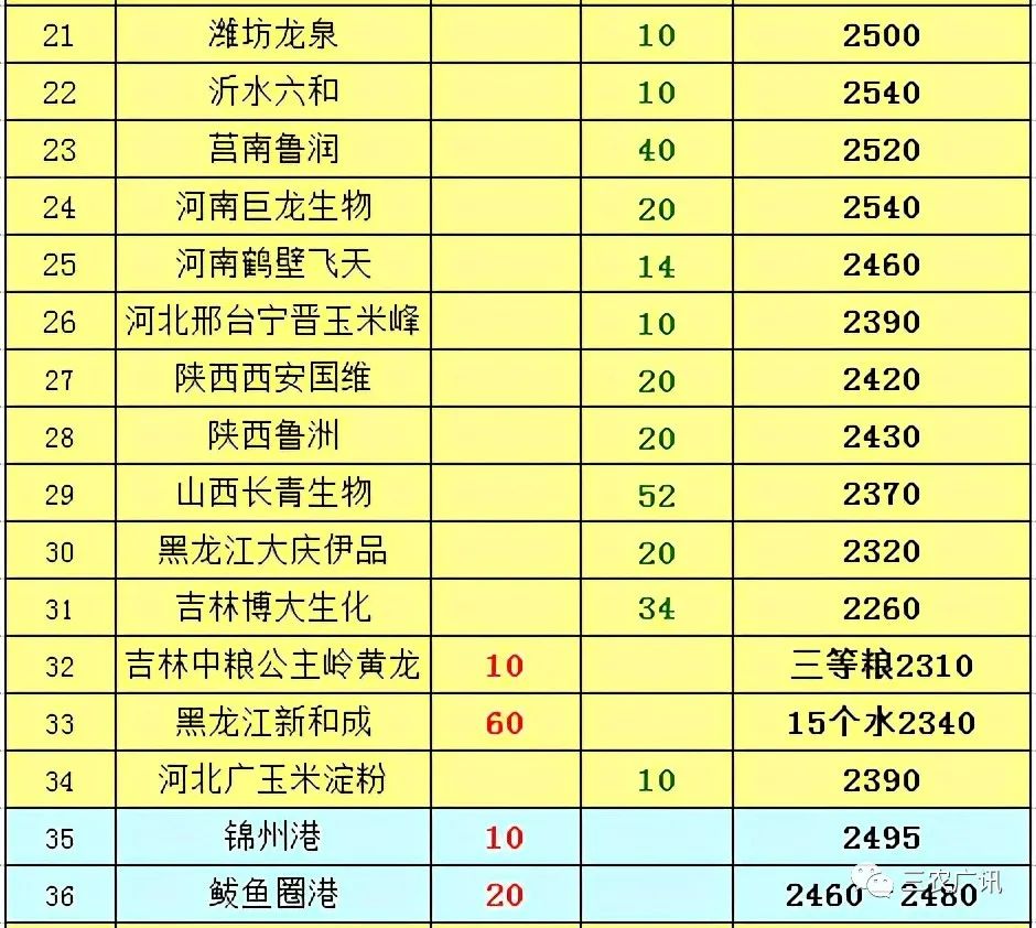 希杰(聊城)生物科技有限公司:自2020年11月13日起,玉米水分14.5%及以下收購價格2,460元/噸。水分14.5%以上價格2,440元/噸。水分高于30%拒收。東北玉米暫停收購。(采購部,276號開始執(zhí)行)